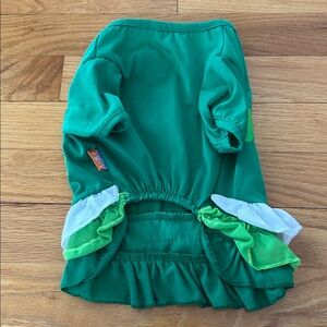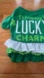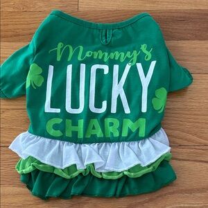 Only worn one time and in excellent condition. This cute little St. Patrick’s shirt says mommy’s lucky charm. It’s a pullover style and measures up to 13 inches in the neck approximately 16 inches in the length 11 1/2 inches.