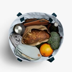 The Goldilocks size of the Bellroy folding totes, the market tote holds your farmers market haul, blankets for the movie under the stars, or packages for the post office.