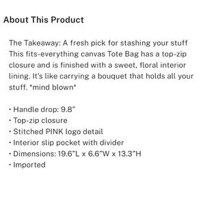 PINK Victoria's Secret Light Pink Floral Tote