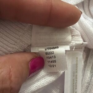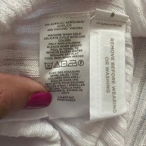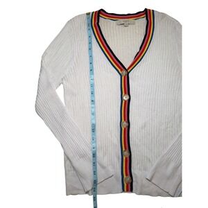 LOFT Cardigan Sweater Womens XL White Good Rainbow Trim Ribbed V-Neck 564849