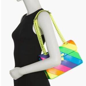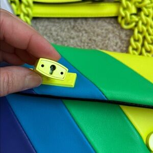 Nwt. In perfect new condition. Magnet closure. 2 interior pockets. Not heavy. Dust bag included. Chain pull-through straps convert from shoulder to crossbody. Crafted from smooth leather. In neon rainbow stripes. 20” strap drop. Logo jacquard lining in black 100% polyester. Logo-engraved padlock. Size 10.2*3.9*7”.
