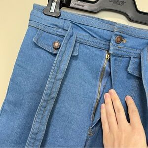 Measurements; waist 14”, inseam 31”, rise 12”, hem width 12.25”.