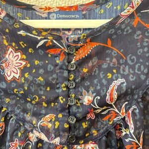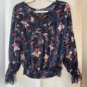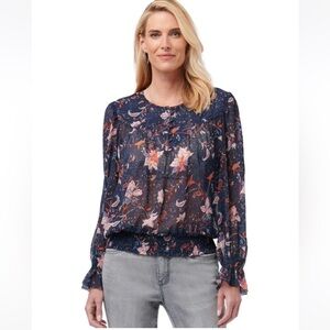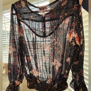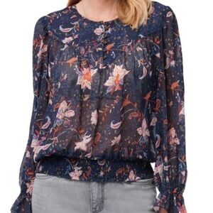 Democracy | Flowy Semi-Sheer Long Blouson Sleeve Blouse with Smocked Hem M…