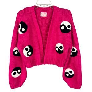 Free People Mure Grand Pink Yin Yang Embroidered Long Sleeve Open Front Cardigan