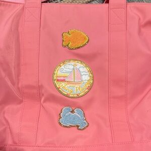 Stony Clover Ln., Beach tote bag with beach patches and other patches sewn on. Some scuffs/marks as pictured which could be cleaned/removed. Sold as is. Used handful of times, otherwise in great condition.