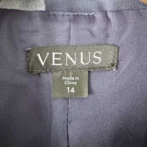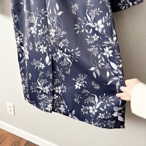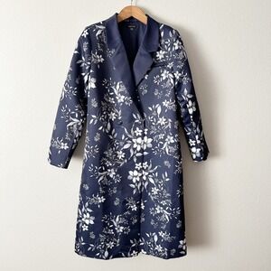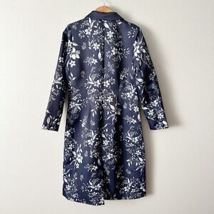 Venus Navy Floral Print Satin Long Formal Elegant Over Coat Women's Size 14