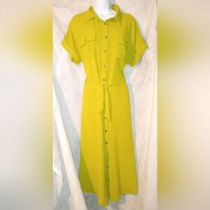 Full length buttoned double pocket dress with cuffed sleeves and removable belt. (Sz. S)