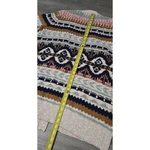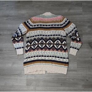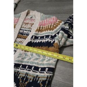 LL Bean Womens Fair Isle Cotton Ragg Open Front Cardigan Size M Chunky Winter