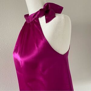 Kersh Hot Pink Halter Top Barbie Mock Turtleneck Side Bowtie SZ S