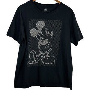 Disney Store Black & Pixelated Dot Design Mickey Mouse Graphic Tee Shirt L