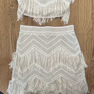 Lulu's Ivory Fringe Skirt Set