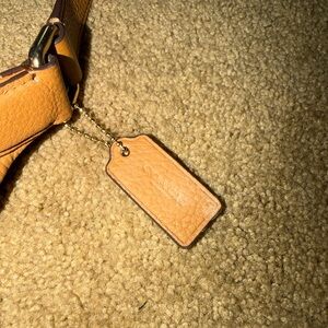 Stylish Coach crossbody in tan leather. Perfect for everyday use. Features a sleek design. It has some visible wear that you can see in the photos on the front off the bag. But, overall it’s in great condition!