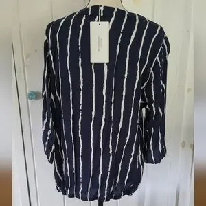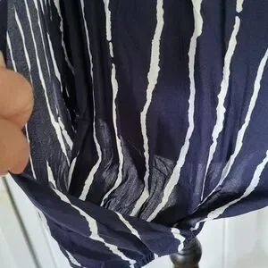 Bloomchic Stripe Crossover Snap Closure Half Sleeve Blouson Top