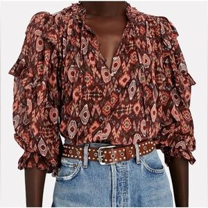 Ulla Johnson Miray Silk Chiffon Blouse in Garnet Size 6