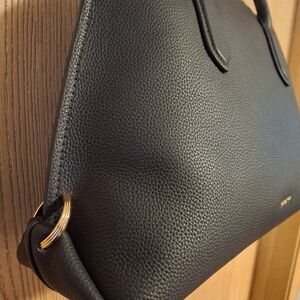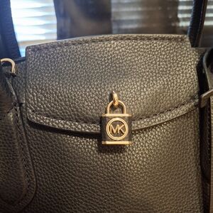 This Michael Kors Sandra satchel/top handle bag in black is a stunning addition to any wardrobe. The exterior is made of high-quality leather and features a magnetic snap closure. The bag is spacious. The bag is beautifully lined.