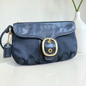 Coach Bleeker Black Signature Canvas Tattersall Lined Clutch Wristlet
