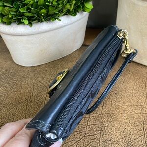 🖤 Coach Bleeker Black Signature Canvas Tattersall‑Lined Clutch Wristlet