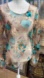 This is a preowned mesh top with long sleeves. It is on the heavy side for a mesh top, it is very sheer and has a pretty turquoise floral print to it. It doesn’t have a tag, but is like a size extra large with a bit of stretch to it. No rips tears snags that I can see. Preowned in decent condition. Sold as is.