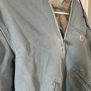 This is the Carhartt Women's Sierra Sandstone Jacket in the color Seaglass Blue. Very great condition. Sherpa lined. Size Small in women’s.