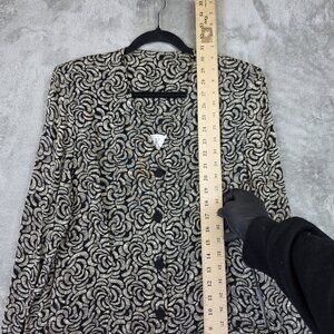 Vintage A.K.F. Blazer Jacket Womens 10 Black Floral Button Front Longline USA