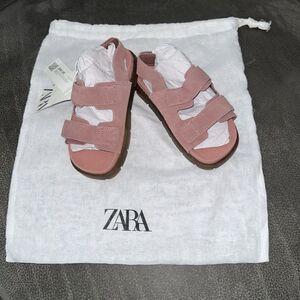 Keywords: Zara Pink Leather Sandals, Kids Summer Shoes, Velcro Sandals, Zara Toddler Footwear, Suede Sandals for Girls.