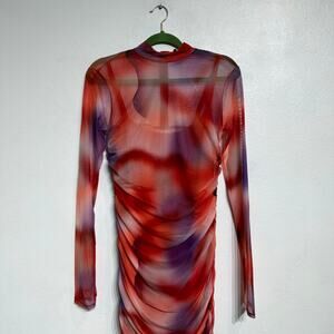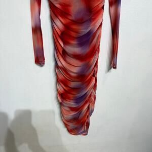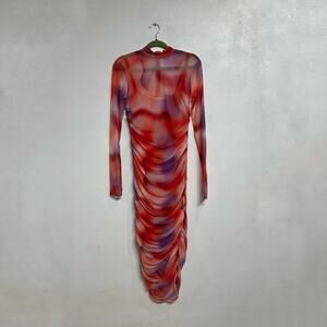 Capsulle Red Summer Heat Print Mesh Ruched Midi Bodycon Dress Sz M