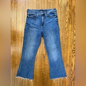 Stylish flare jeans with a modern edge. Features a classic blue wash. Perfect for casual outings.