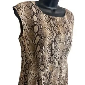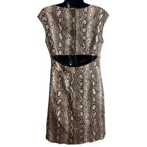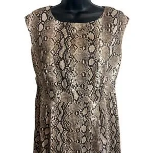 Michael Kors Snakeskin Print Sheath Dress Size 8 Tan Brown Cap Sleeve Lined EUC