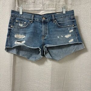 rag & bone Mid-Rise Distressed Cut-Off Jean Shorts Women’s Size 28 boho Cuff Hem