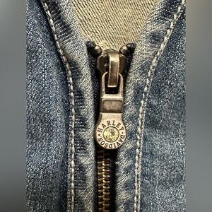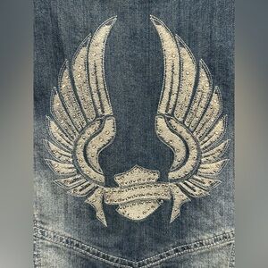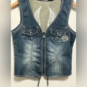 Harley Davidson Women Medium Denim Zip Corset Rhinestone Wing Pocket Vest Y2K