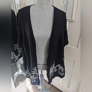 Womens Vintage Cimmaron plus Black/White Open Safari Print Cardigan. 1X