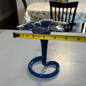 Elegant Muran blue glass vase with a unique flower design. Perfect for home decor.
