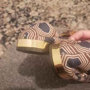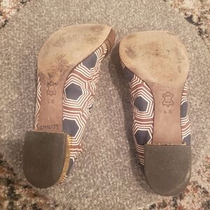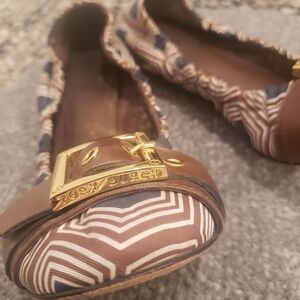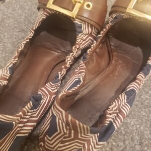 Tory Burch leather, fabric with gold buckle trim.l, flats, ballet.