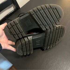 Bold dark red leather boots with signature yellow stitching. Durable and stylish design. A limited edition free people collab - got in NYC only worn 1x. Excellent like new condition EU 38