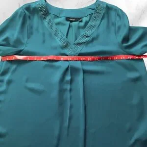 APT. 9 Women's Teal Lucky Shot Embellished V-Neck Satin Blouse Top Size Medium