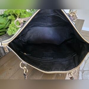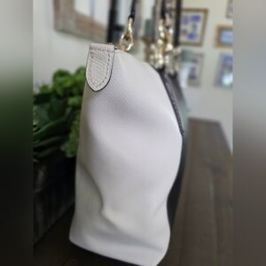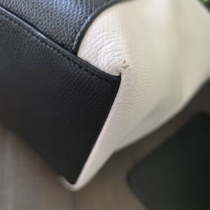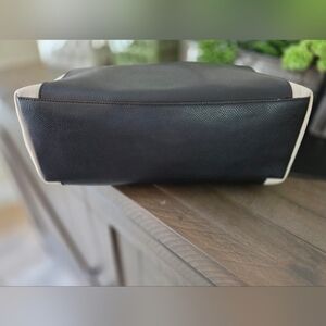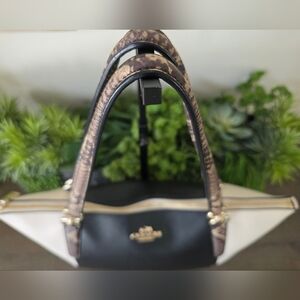 Elevate your style with this authentic Coach large colorblock tote! Featuring a striking black and ivory color combination with luxurious snakeskin-embossed leather handles and gold-tone hardware. This spacious tote is perfect for work, travel, or everyday use. All my bags are authenticated through Coach Confirmed.