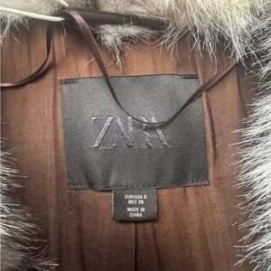 Zara Short Faux Fur Animal Print Jacket Coat NWT Small Tan Brown Black White