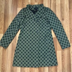 Banana Republic Navy and Green Geometric Trench Coat size medium