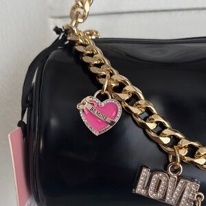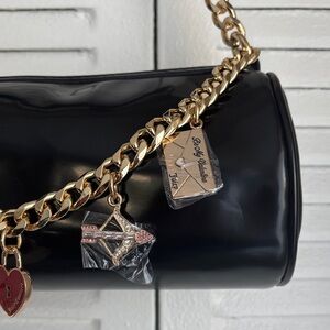 Juicy Couture Black Baguette Barrel Bag Gold Chain Heart Charm Y2K Glam NWT