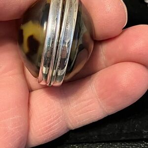 Ralph Lauren Faux Tortoise Shell Cabochon Locket Long Silver Chain