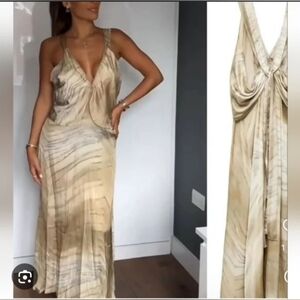 Step out in style with this elegant beige marble dress. Perfect for any occasion, this dress offers a sophisticated look with its unique pattern and flowing design.