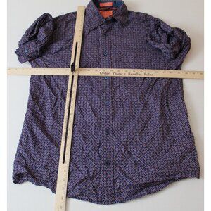 Faconnable Mens Small Purple Geometric Print 100% Cotton Button Down Shirt