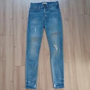 Madewell 9" High-Rise Skinny Jeans Destructed Hem Light Wash 25 Kaihara