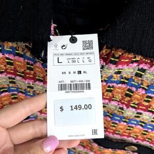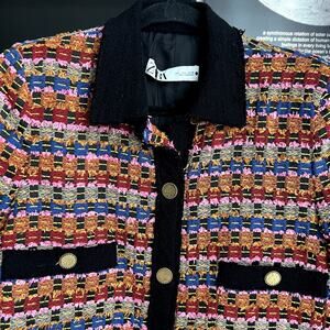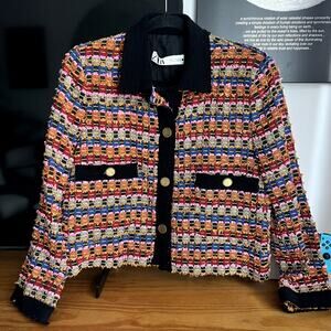 Zara Rainbow New Tweed Cropped blazer jacket size L viscose