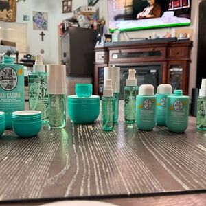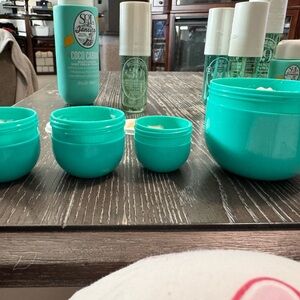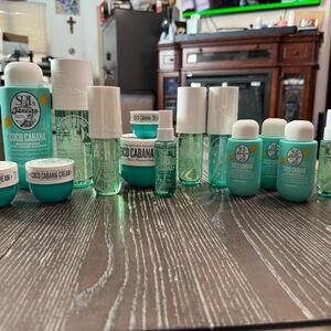 Sol de Janeiro Cheirosa 39/Coco Cabana bundle. Some items opened. First picture shows what you get in this bundle. Second picture shows what items are open, lids removed from open items. Other pictures show fill lines/remaining product. Items sold as is. No returns. No boxes. Items come from a smoke free home but not a pet free home. There may be pet hair on the items or the packaging. ***PRICE IS FIRM*** This bundle includes mix of First and current releases from Sol de Janeiro. 2 of the creams are off white/brownish..smells the same. A lot of these items RARE/HTF.