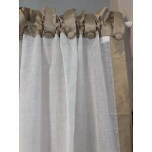 Sheer Curtain Tab Button Top Panels (4) White And Gold 60Wx63L Hollywood Regency