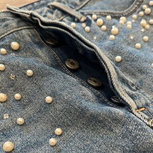 GRLFRND Blue Denim Skirt with Pearl Embellishments Size 26