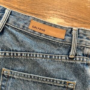 Elevate your style with this chic blue denim skirt from GRLFRND, featuring elegant pearl embellishments. Perfect for any casual outing. Size 26.
