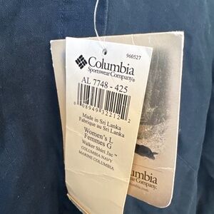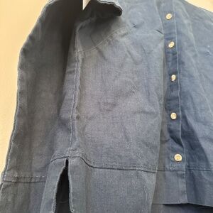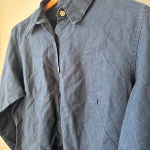 Columbia sportswear company, linen, Lynn Walker shirt jac, size large, 55% in 45% cotton, color, Columbia Navy, one tiny snag left arm
