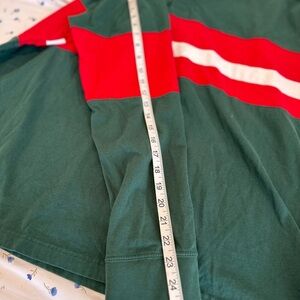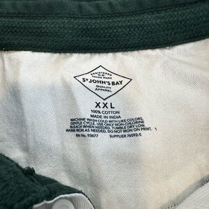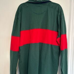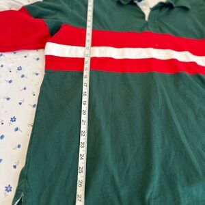 Stylish men's shirt featuring bold green and red stripes. Perfect for casual outings. St. John’s Bay Sz: XXL Long Sleeve Rugby Colorblock Striped Multicolor red, green, white color-way Polo Top. Quilted rugby shoulder padding. 1/4 button. Spread collar. Great used condition light normal wear. No rip, stains or defects. Please see pictures for measurements.
